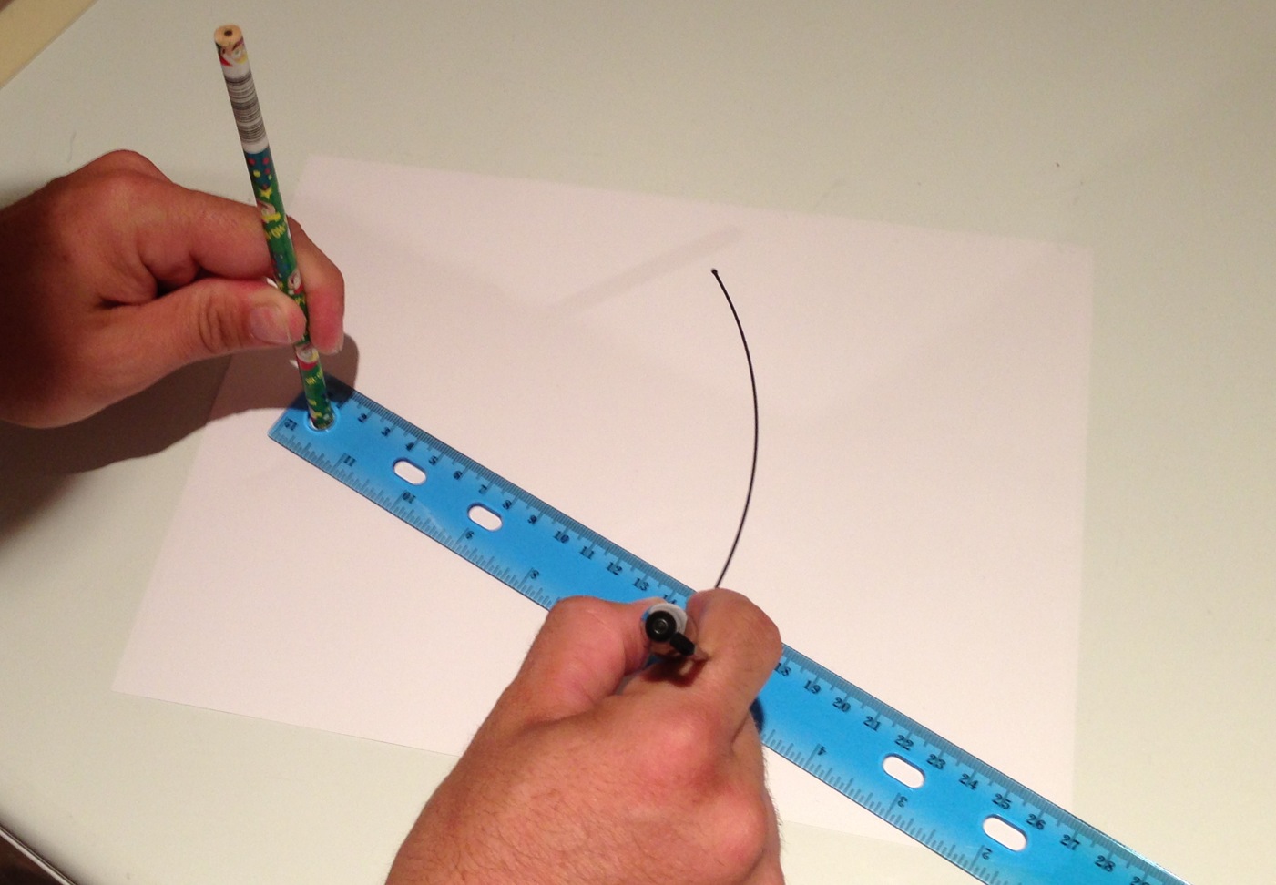 Use the ruler with holes in it, to draw your circles. Use the eraser end of a pencil to hold the ruler in place at one end. Use another pencil and insert it into the hole at the other end. Now rotate the end around in a complete circle, ensuring the eraser end never moves. This is an easy way to achieve a perfect circle. Next move the pencil closer to the eraser end to draw a smaller circle, and so on. You will need 4 circles in total.